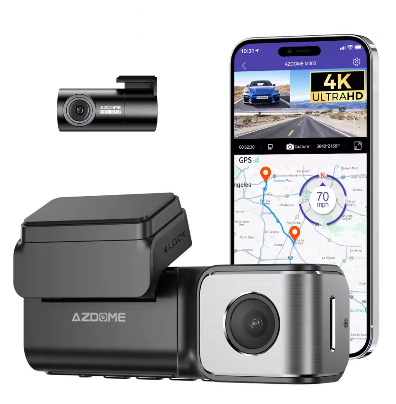 AZDome M360 2CH 4K Wifi GPS 64gb dashcam