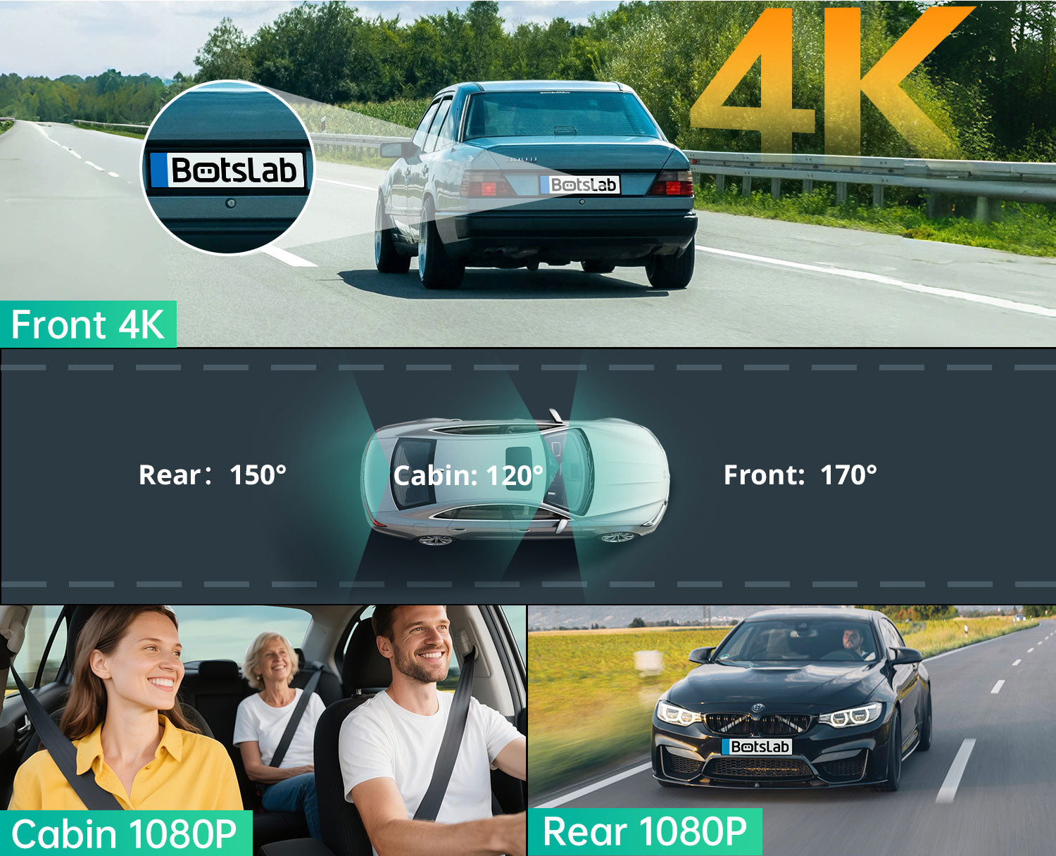 Botslab G980H Pro 3CH gör fantastiska inspelningar med hjälp av Sony-bildsensorer. Dessa superkraftfulla sensorer garanterar de skarpaste bilderna och är oöverträffade, särskilt i mörker. Videorna spelas in i 3K-upplösning framtill och FullHD för interiören och baktill.