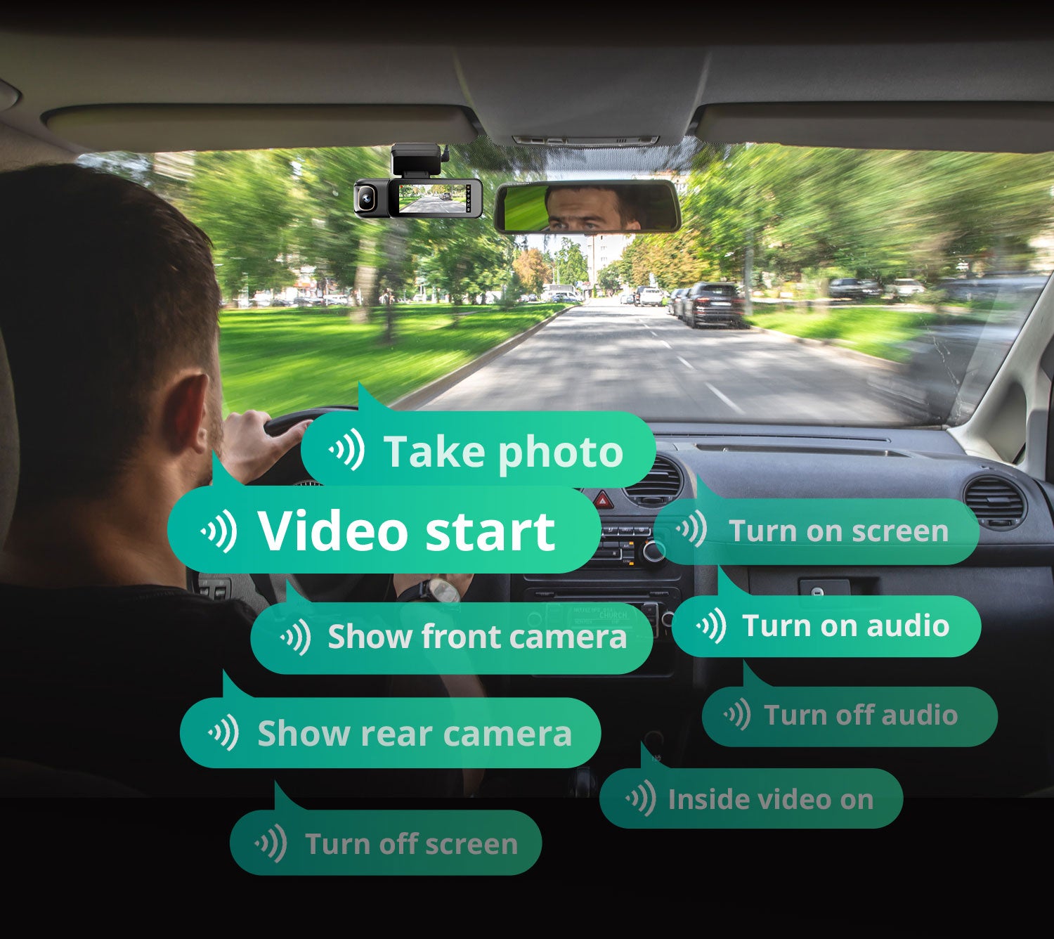 Dashcam kan styras med hjälp av (engelsk) röststyrning. Bland annat följande åtgärder stöds: