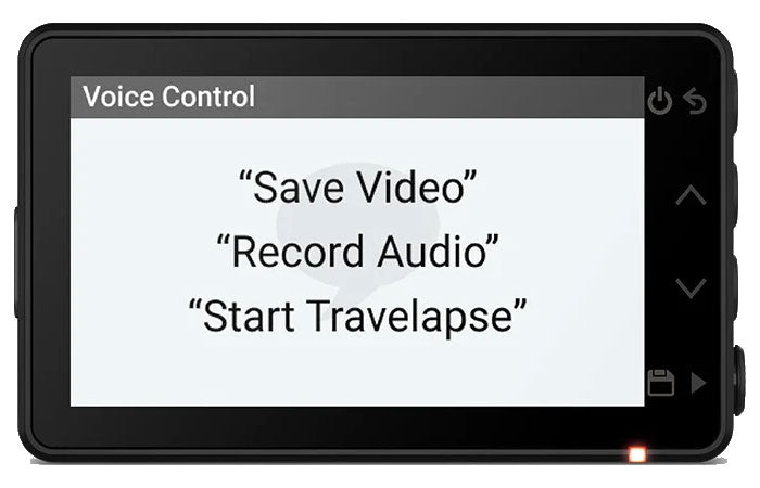 Garmin Dash Cam X110 ger dig möjlighet att styra dashcamen med röstkommandon (på engelska). Med kommandon som ”Make picture”, ”Turn off screen”, ”Turn on audio” och ”Lock the video” kan du använda dashcamen säkert under körning och missar inga incidenter.