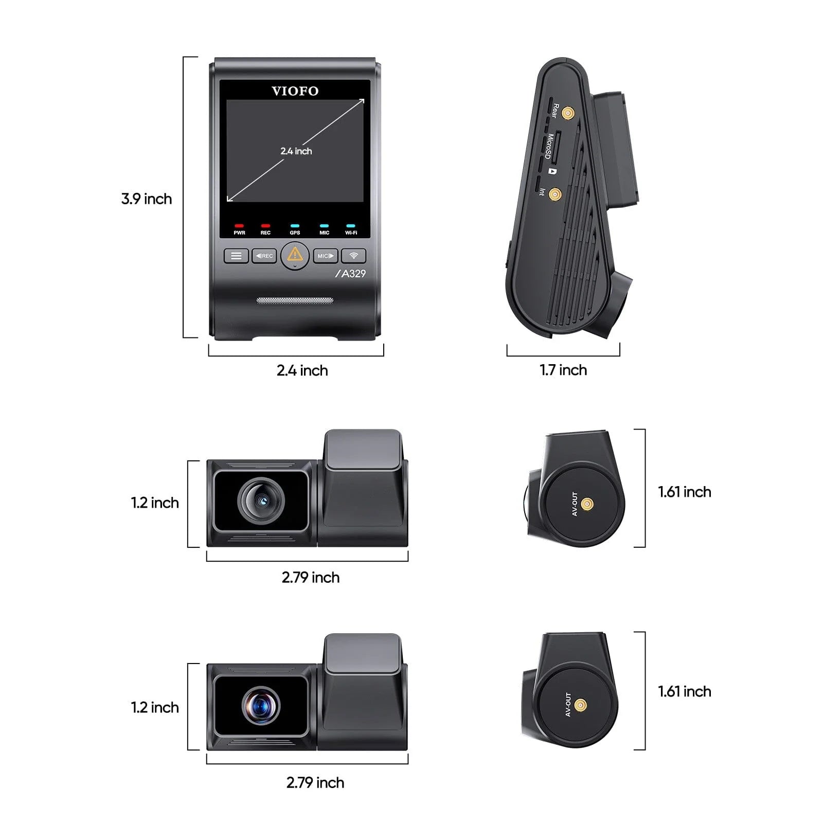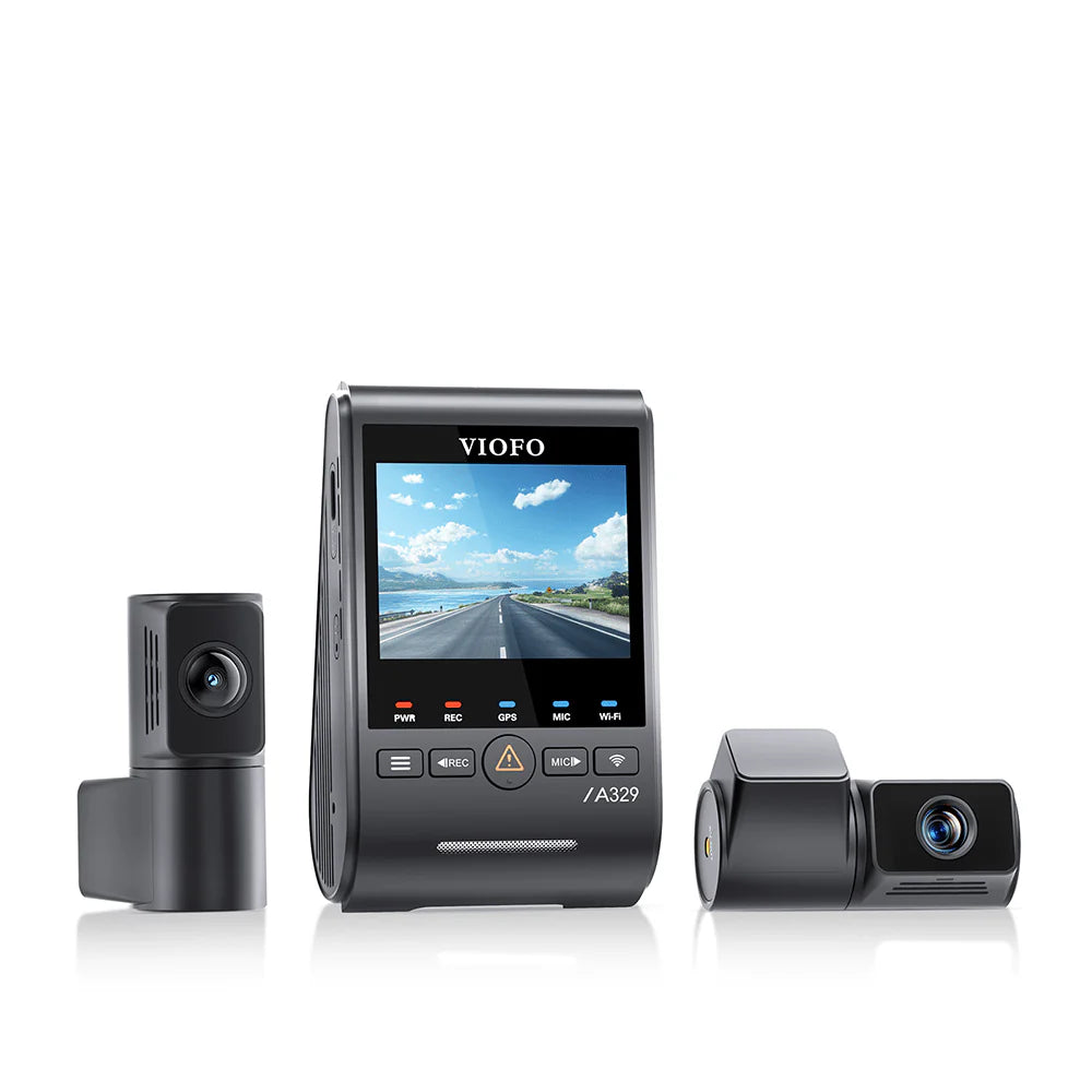 Viofo A329T 3CH 4K wifi GPS är utrustad med tre kameror, som kan spela in både fram, bak och inuti bilen. Viofo A329S 3CH filmar med 4K-upplösning fram och med QuadHD (2K) bak och inuti bilen.